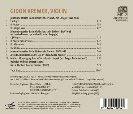 巴赫: 第2號小提琴協奏曲、奏鳴曲( 雷史畢基改編管弦樂版) 、 小交響曲/ 2首小提琴奏鳴曲(改編自舒尼特凯/ 穆索斯基 作品)/ 恩斯特:<夏日最後玫瑰>