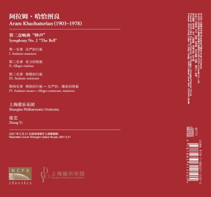 阿拉姆·哈察都量 Aram Khachaturian(1903-1978) 第二號交響曲“鐘聲” Symphony No. 2 “The Bell” 第一樂章 莊嚴的行板Ⅰ.Andante maestoso 第二樂章 有力的快板Ⅱ.Allegro risoluto 第三樂章 稍慢的行板 Ⅲ.Andante sostenuto 第四樂章 稍快的行板-莊嚴的、綿延的快板 Ⅳ.Andante mosso-Alegro sostenuto, maestoso